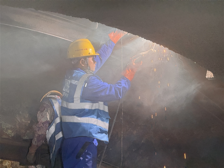 12月7日,在位于黃山區(qū)湯口鎮(zhèn)的中鐵上投黃山旅游T1線項目東嶺隧道施工現(xiàn)場,中鐵十局施工人員正在有序作業(yè)。